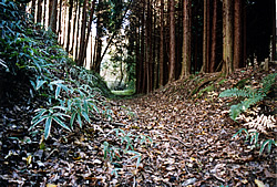 二月に入ったある日曜日の朝、御斎峠旧道をあるいてみようと思ひたった。多羅尾の南、六呂川を過ぎると車道から分かれて左斜めに上っているのが昔の御斎峠越である。空は晴れていたが大気は冷たく、まさに「早春賦」の詩の世界であった。空を見あげると静寂の中に精一杯枝をひろげている冬木が力強く感じられる。殆ど人が通らないのかクマザサで道がおおはれているところもあり、小鳥が「チチッ」と啼きながら先へさきへ飛んでいったりした。一度下って再び上りになると右に小さな谷が現われた。日中だというのに土が固く凍てついている。見通しのきかない山道、さきを急ぐ家康一行は、山鳥の飛びたつ音にも肝を冷やしたのではと想像された。谷はやがて見へなくなりさらにのぼると林道に突きあたる。杉がうっそうとしてきて気味が悪い。足ばやにいくと左下に刑場跡があった。石碑が二基建っていて左は「南無妙法蓮華経」と読める。説明板には「——